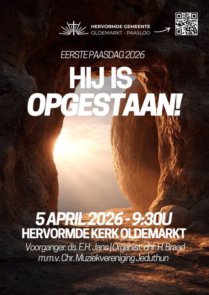 Je bent van harte welkom om dit samen te vieren in de Hervormde Kerk van Oldemarkt op 5 april om 9:30u. Ds. E.H. Jans gaat voor in deze dienst en er is muzikale medewerking van Chr. Muziekvereniging Jeduthun.